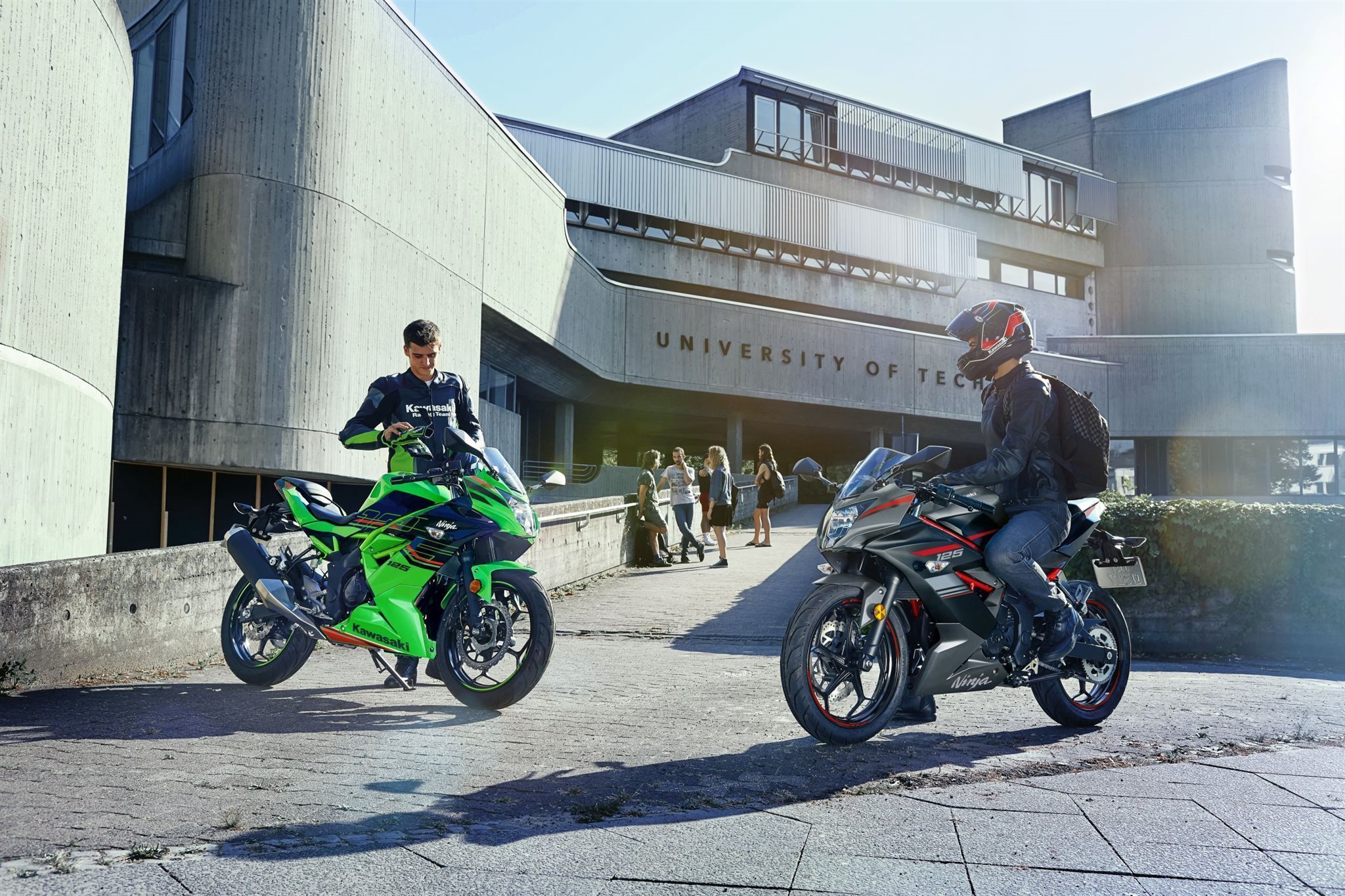 Die Ninja 125 für die A1-Führerscheinklasse ist nicht nur der erste Schritt in die Ninja-Welt, sondern dieses Motorrad steht auch für die berühmte Ingenieurskunst von Kawasaki. Der Gitterrohrrahmen erinnert an die Ninja H2. Die schmale Silhouette, die vom Kawasaki Racing Team inspiriert wurde, weist in Richtung Ninja ZX-10R. Mit kraftvollen 15 PS (11 kW) bietet der Motor schon im unteren Drehzahlbereich viel Power. Dazu kommt das bekannte Ninja-Top-End, also ein Leistungsschub im oberen Bereich. Ninja 125 - hier beginnt der sportliche Ninja-Lifestyle von Kawasaki!